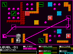 laser receiver, a series of obstacles, some bombs, some fixed, adjustable and